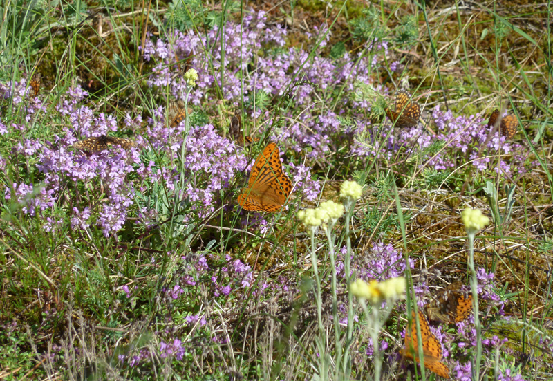 Abb. 23b: Energietrasse im Löcknitztal bei Kienbaum, Nahaufnahme: verschiedene Falter bei der Nektaraufnahme an Sand-Thymian, 09.07.2012 (Foto: J. Gelbrecht)