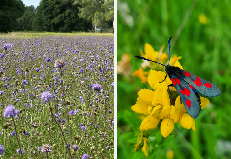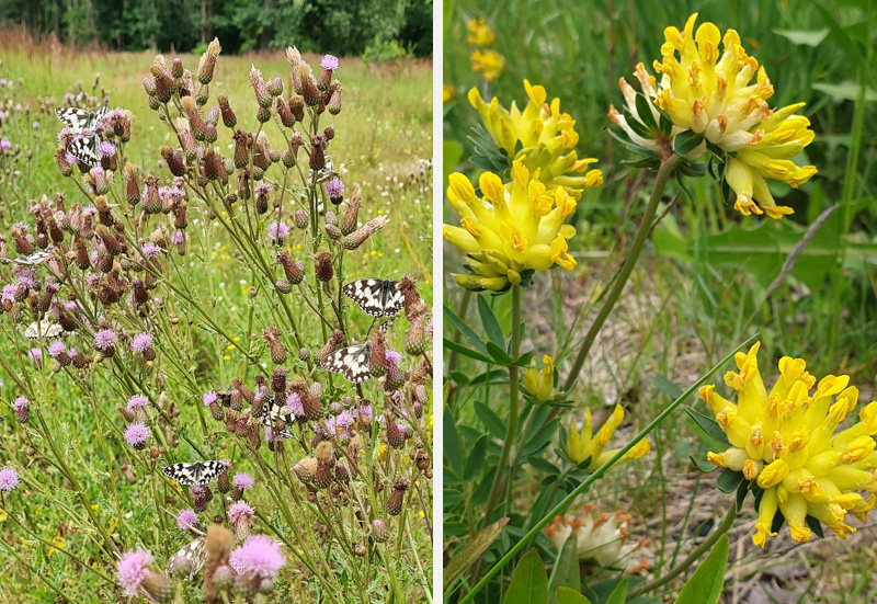 - um Arten, die wichtige Nektarpflanzen für Schmetterlinge (und andere Insekten) in der Zeit von etwa Anfang Juni bis Mitte August sind,