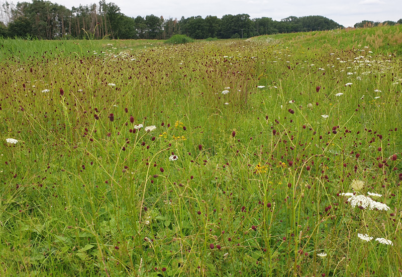 Abb. 6: Wiesen an der Schwarzen Elster bei Saathain mit Großem Wiesenknopf (Sanguisorba officinalis), 21.07.2021 (Foto: M. Luck)