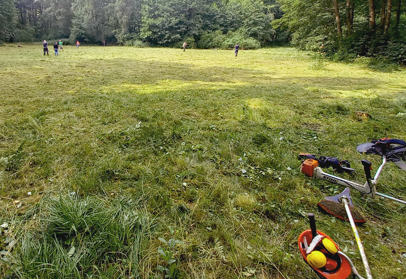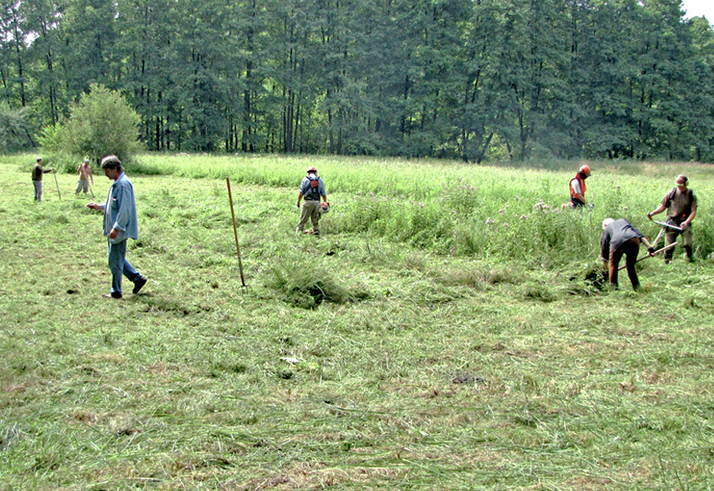 Abb. 8: Mahd einer nassen Wiese im Löcknitztal mittels Freischneider durch die IG Löcknitztal, (Foto: G. Ziebarth)