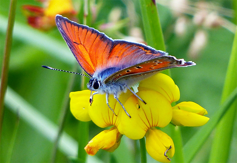 Abb. 1: Lilagold-Feuerfalter (Lycaena hippothoe), eine Art der Feuchtwiesen, Trampe, 24.6.2013 (Foto: I. Seidel), in Brandenburg vermutlich 2020 ausgestorben